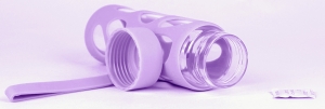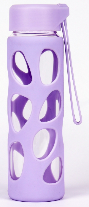 Бутылка спортивная. Материал - боросиликатное стекло с силиконовой оплеткой. Силиконовая оплетка увеличивает безопасность бутылки. Крышка с уплотнителем. Силиконовая петля для переноски.