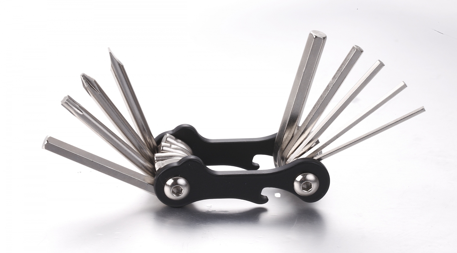 10 функций : шестигранный ключ 2/2.5/3/4/5/6 мм, шлицевая отвертка, крестовая отвертка, торкс Т25, открывалка.