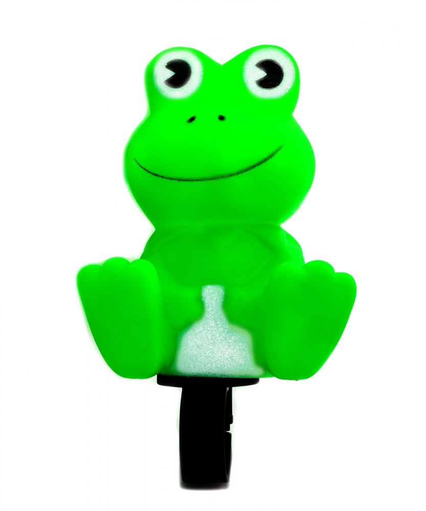 Детский клаксон с резиновым верхом и пластиковым креплением на руль. Форма: лягушка.