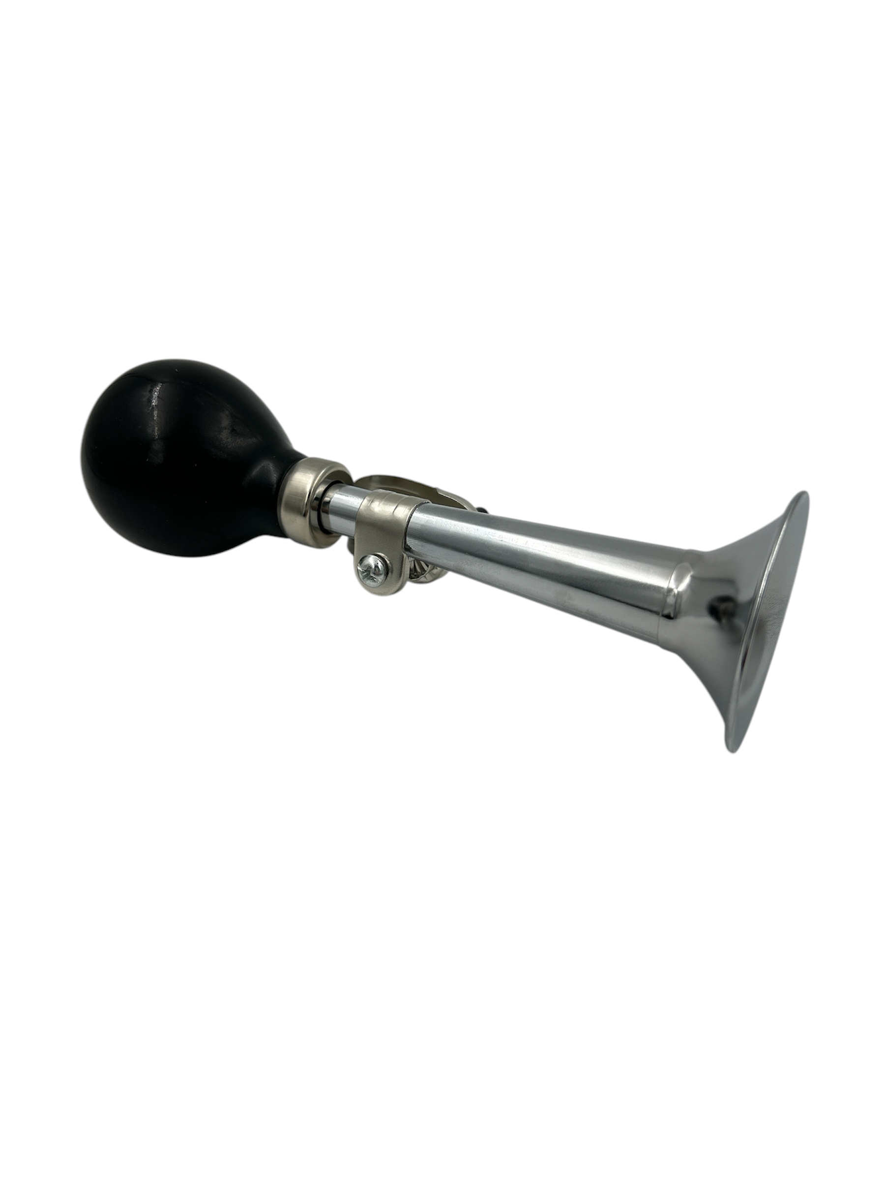Сигнал клаксон, прямой. Материал: трубка - сталь, груша - резиновая. Цвет: серебристый. Размер: длина трубки - 180 мм.