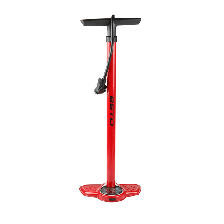 Насос напольный ручной с манометром. PSS головка для двух типов ниппеля: Presta, Schrader. Пружинный манометр, размер 3.5. Максимальное давление 160 PSI. Труба стальная Ø 34 мм. Высота насоса: 66 см. Цвет: красный. Вес: 1440 гр.