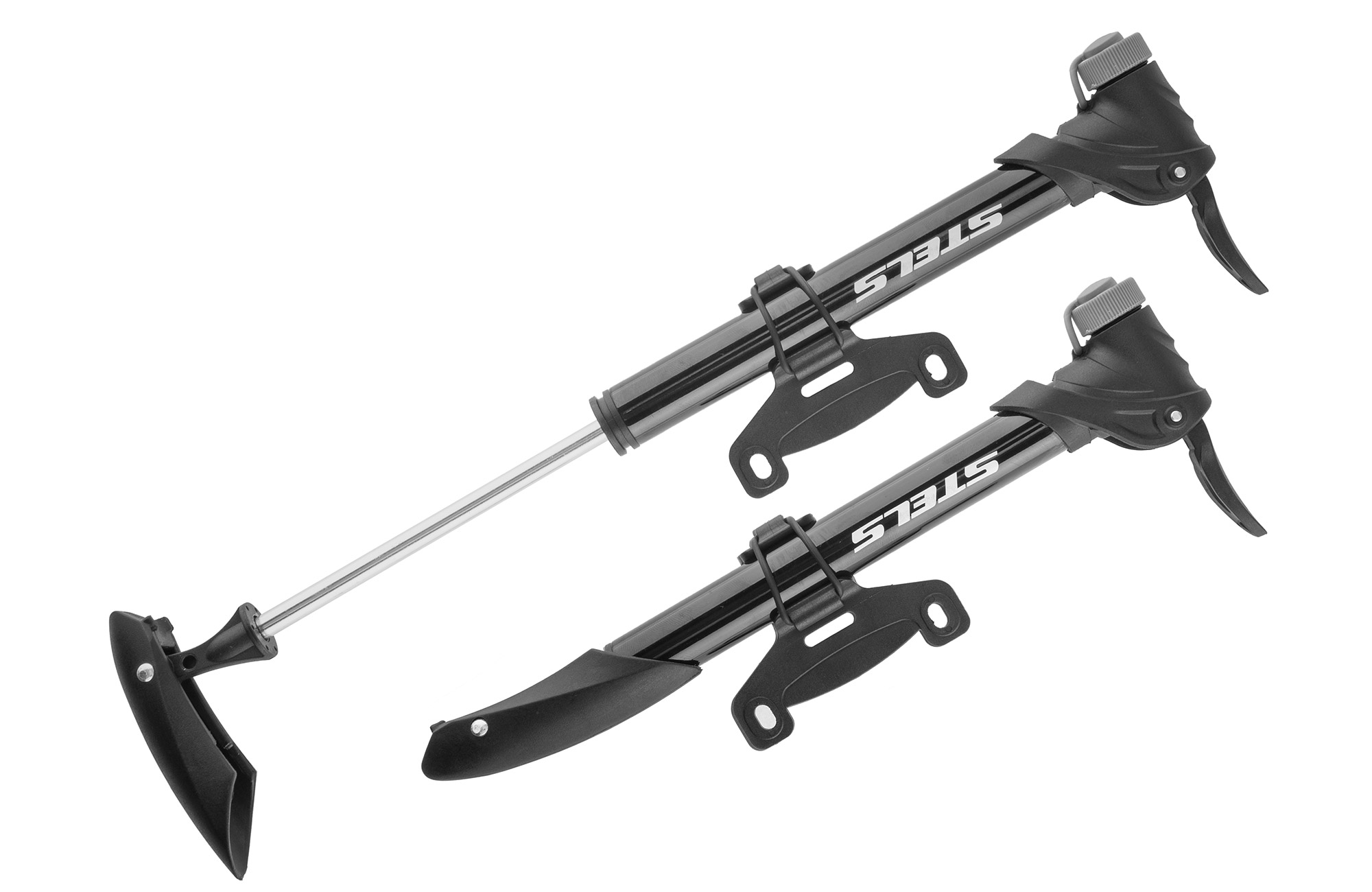 Насос ручной велосипедный M21-03, алюминиевый корпус диаметром 21 мм и длиной 249 мм, универсальный клапан - автовентиль/Presta, с креплением к раме велосипеда, чёрный