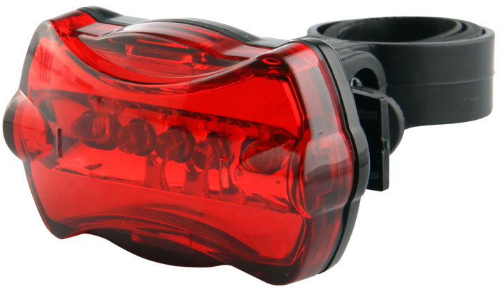 Фонарь задний JY-004T, 5 светодиодов, 7 режимов работы, цвет красно-чёрный, материал пластик, под батарейки АААх2