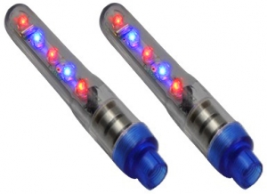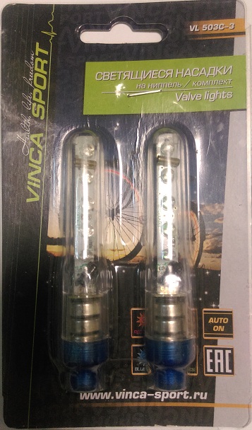 Комплект светящихся насадок на ниппель. Количество: 3 красных диода, 2 голубых диода, 32 вида свечения. Авто включение при начале движения.