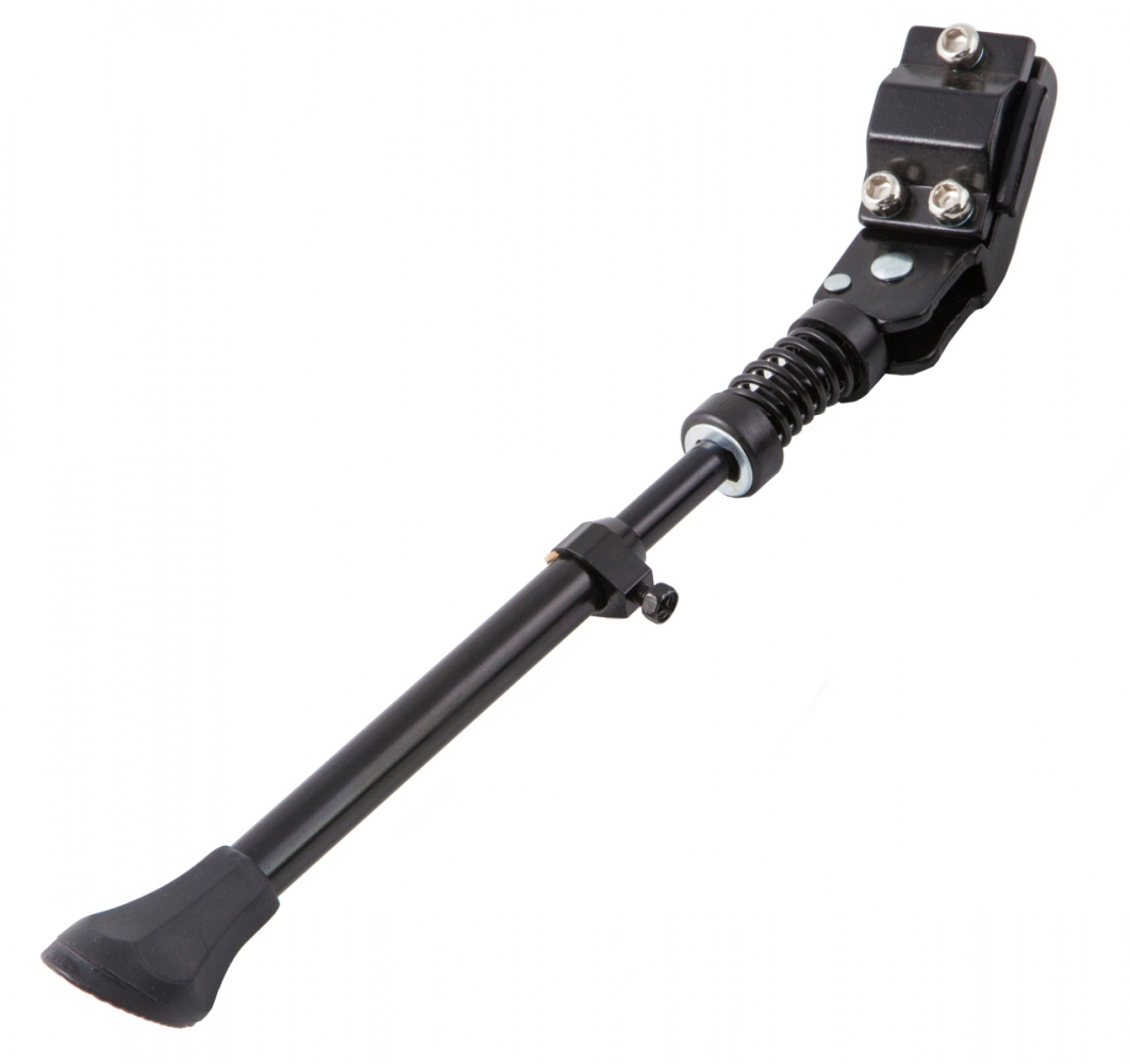 Регулируемая подножка для велосипедов с размером колёс 20"-29". Крепление на перо. Чёрный цвет. Материал: алюминий.