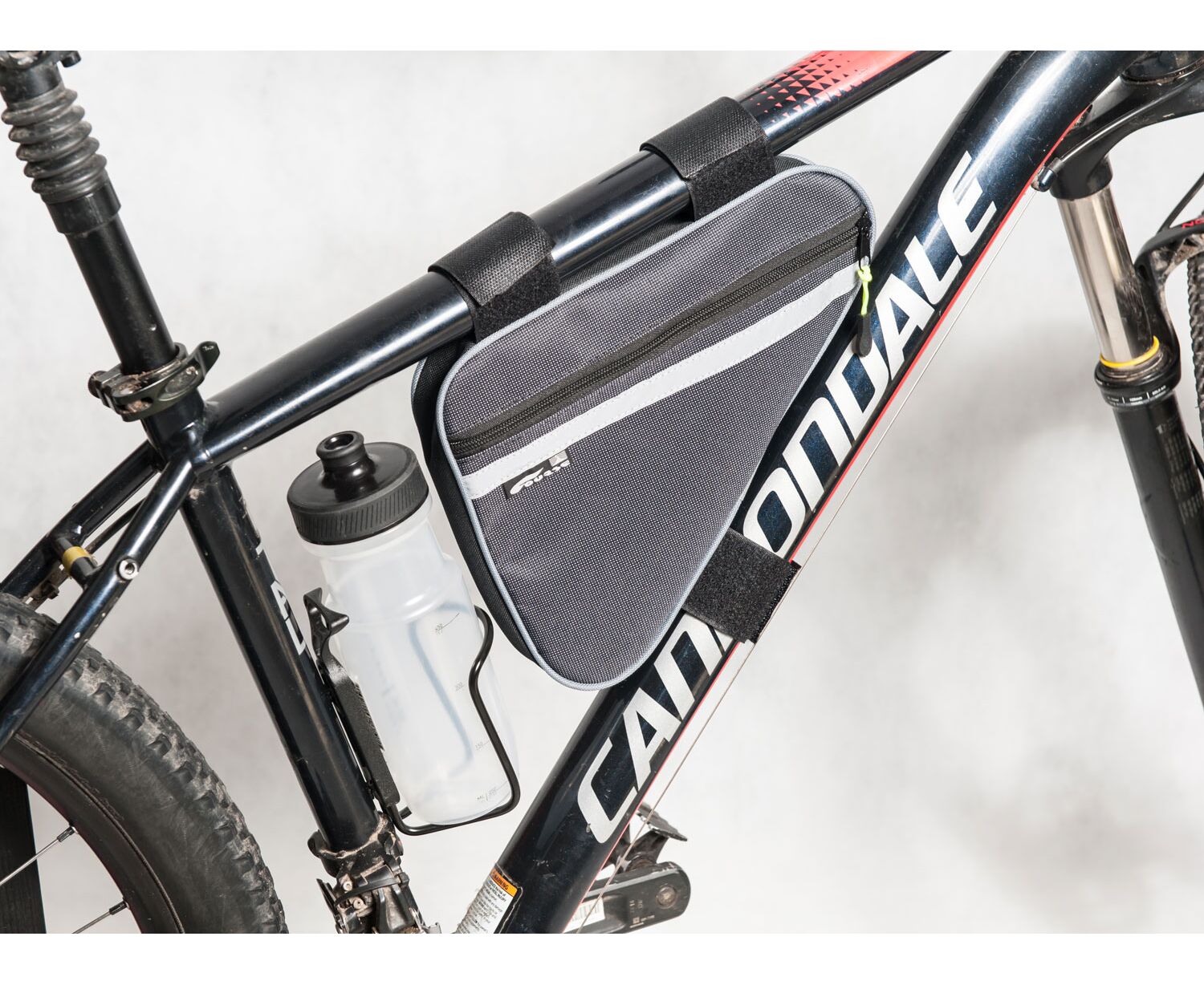 - Такое расположение сумки позволяет пользоваться штатным креплением для бутылки к подседельной трубе.