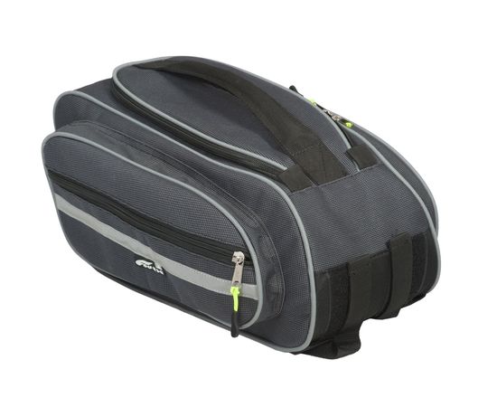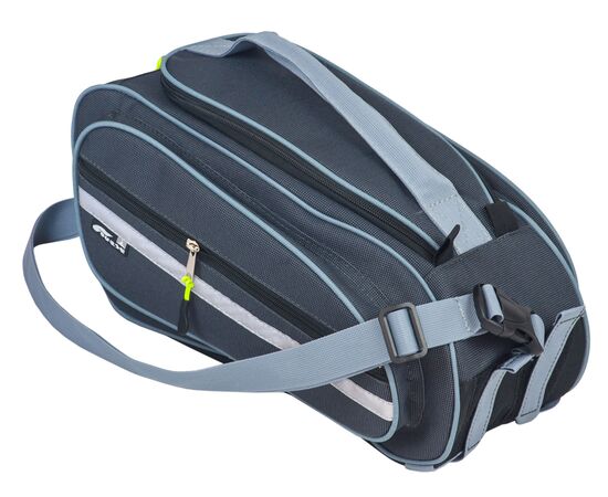 Она предназначена для перевозки на багажнике довольно крупных вещей. С ней можно съездить в магазин, отправиться на пикник или посетить спорт-клуб, а потом снять её с велосипеда и отнести домой, как обычную сумку (отстегнуть от велосипеда и взять с собой), что очень удобно.
