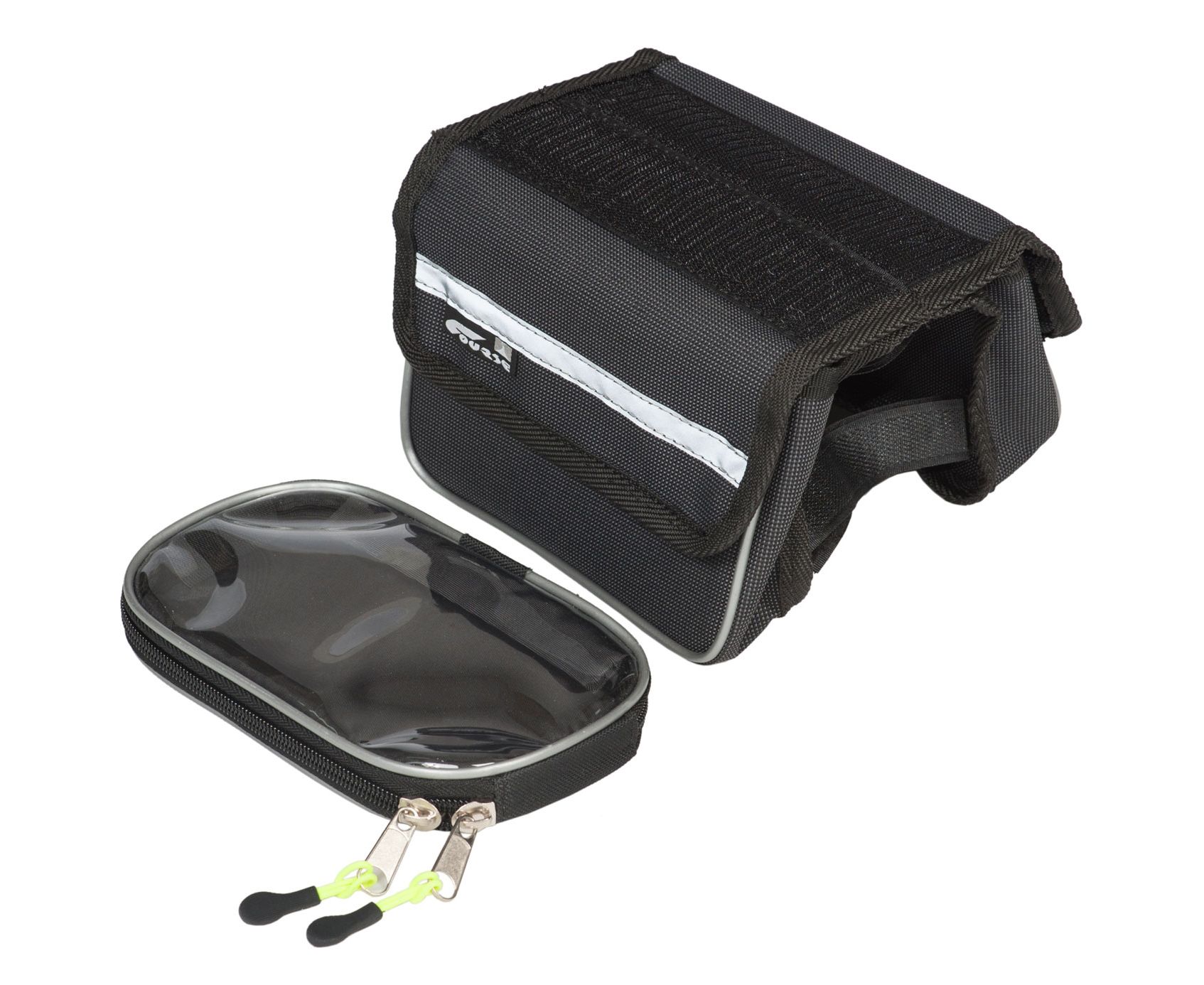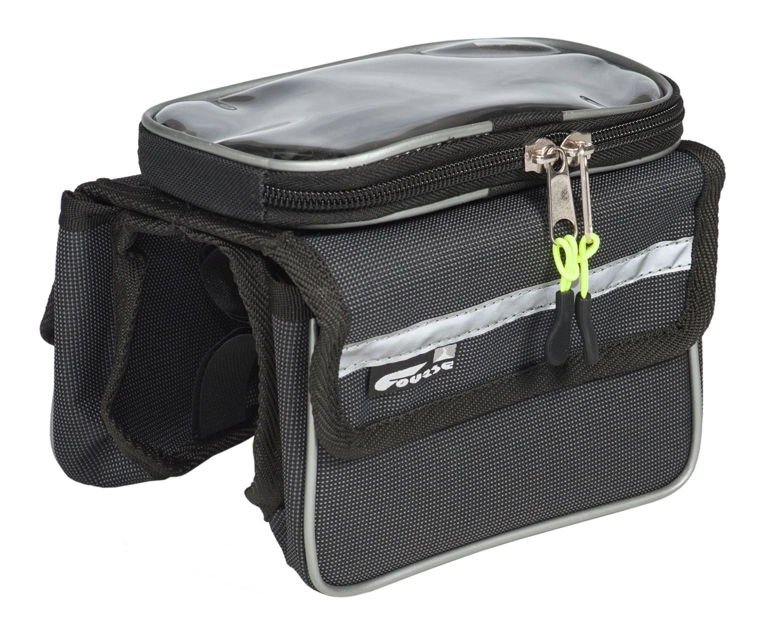 Удобная велосипедная сумка, состоящая из двух независимых отделений со съемным чехлом для телефона. Благодаря особенностям формы сумки и имеющихся креплений, подходит на любую раму велосипеда, в том числе и на «женскую».