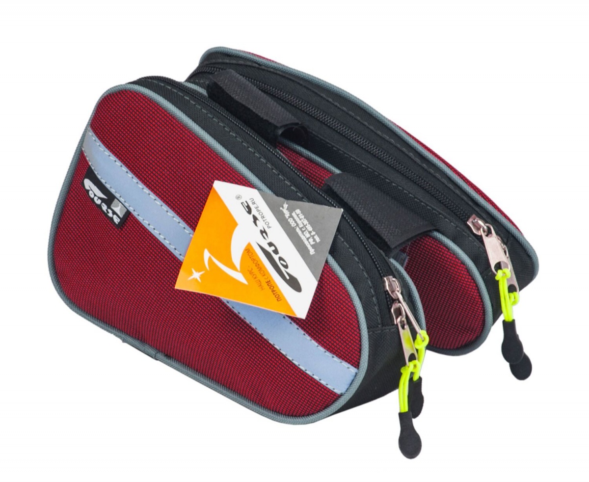 С креплением на раму велосипеда, состоящая из двух независимых отделений.