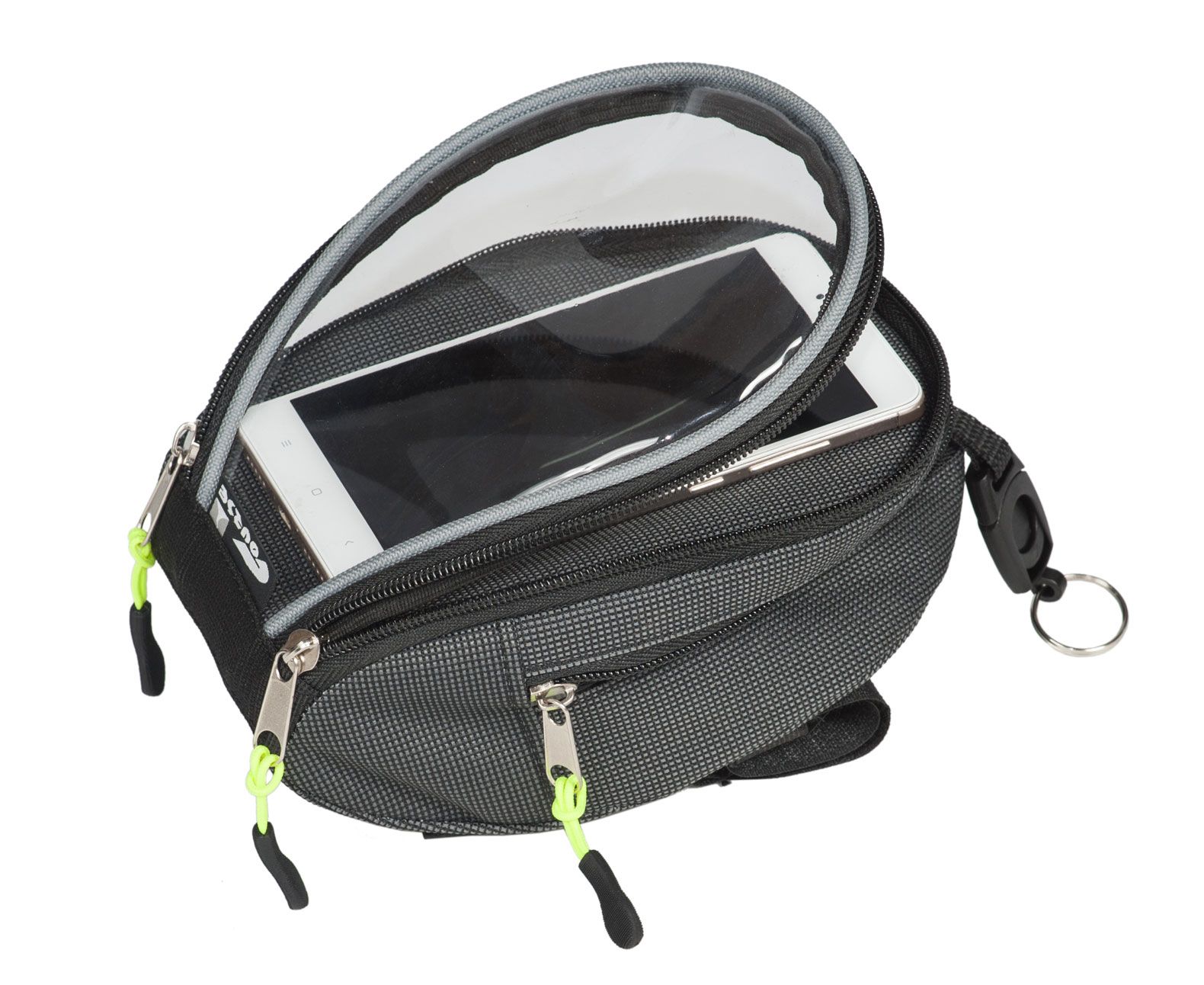 В неё удобно положить вещи, которые должны быть всегда «под рукой»: кошелёк, ключи, перчатки, очки, фотоаппарат и тому подобные вещи. Но главное назначение этой велосумки — сделать удобным использование смартфона, телефона во время езды на велосипеде.