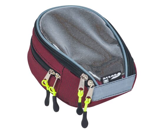 Удобная, универсальная велосипедная сумка с интересным дизайном. В неё удобно положить вещи, которые должны быть всегда «под рукой»: кошелёк, ключи, перчатки, очки, фотоаппарат и тому подобные вещи. Но главное назначение этой велосумки — сделать удобным использование смартфона, телефона во время езды на велосипеде.