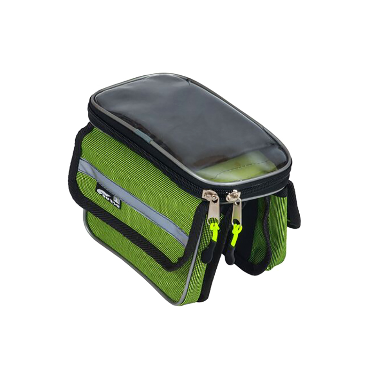 Велосумка ПиФОРМ на раму по форме напоминает букву П и состоит из двух соединяющихся между собой частей на «липучке»: велосумки с боковыми свисающими отсеками для мелочей и съемного чехла для смартфона с верхом из прозрачной плёнки PVC с возможностью использования функции тачскрин. Внутри чехла - система для установки и крепления смартфона с мягки кармашком из ППУ 5мм обшитым тканью и с закрывающимся клапаном. При помощи 4-х лент "липучек" велосумка крепится на раму и дополнительно фиксируется за стойку руля.