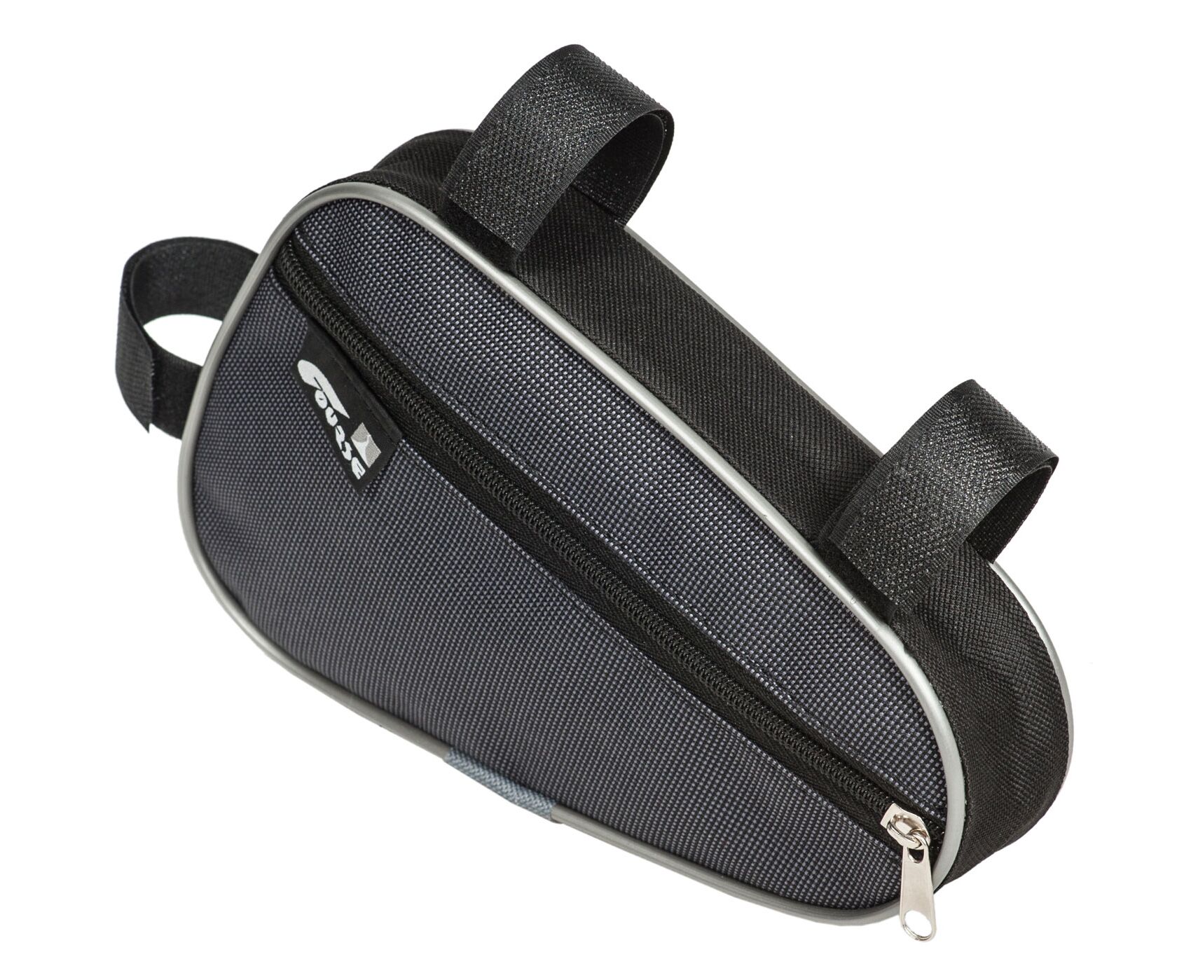 Сумка крепится в заднюю часть треугольника рамы, ближе к седлу велосипеда.