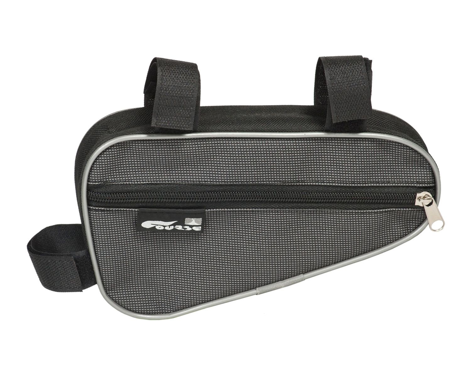 Сумка крепится в заднюю часть треугольника рамы, ближе к седлу велосипеда.