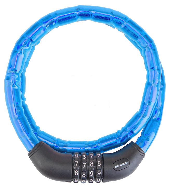 Кодовый замок Stels 81601 со стальными звеньями, 18x1000 мм, синий