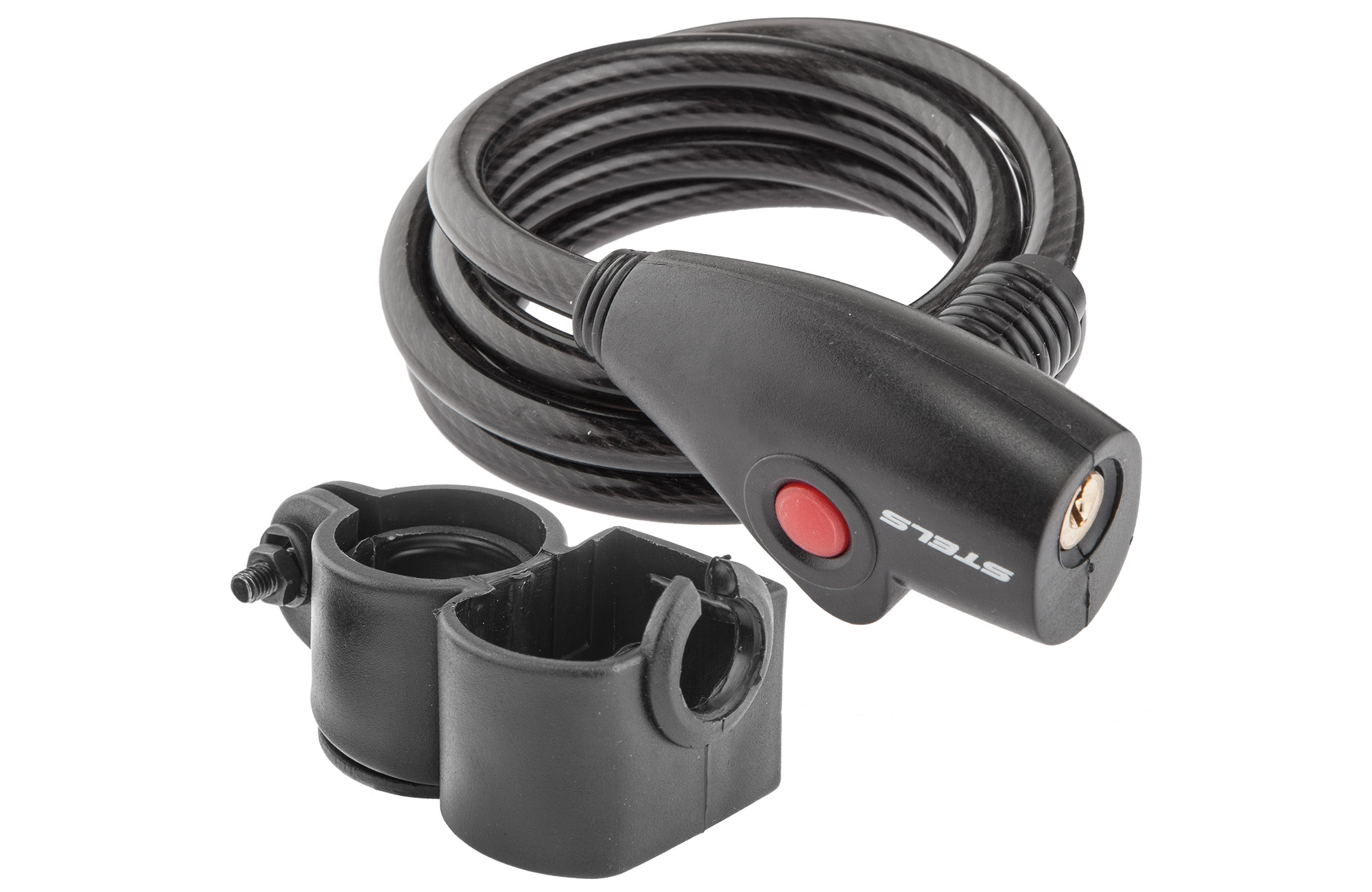 Трос-замок спиральный 87109, трос 8х1500 мм, замок К3 с ключами, с креплением на велосипед HL027, цвет чёрный
