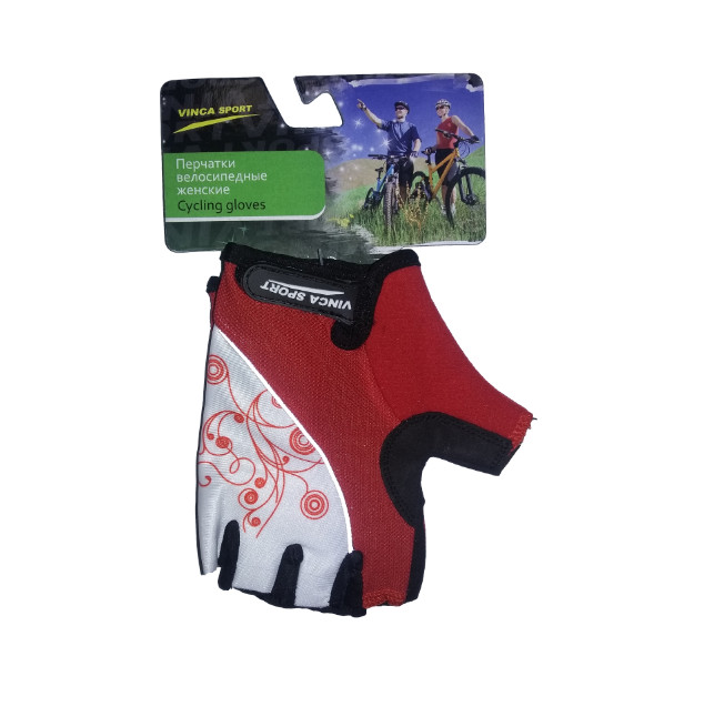 Велоперчатки женские. Специальная выкройка позволяет удобно фиксировать перчатку на руке. Цвет: белый с красным. Размеры: XS, S, M, L.