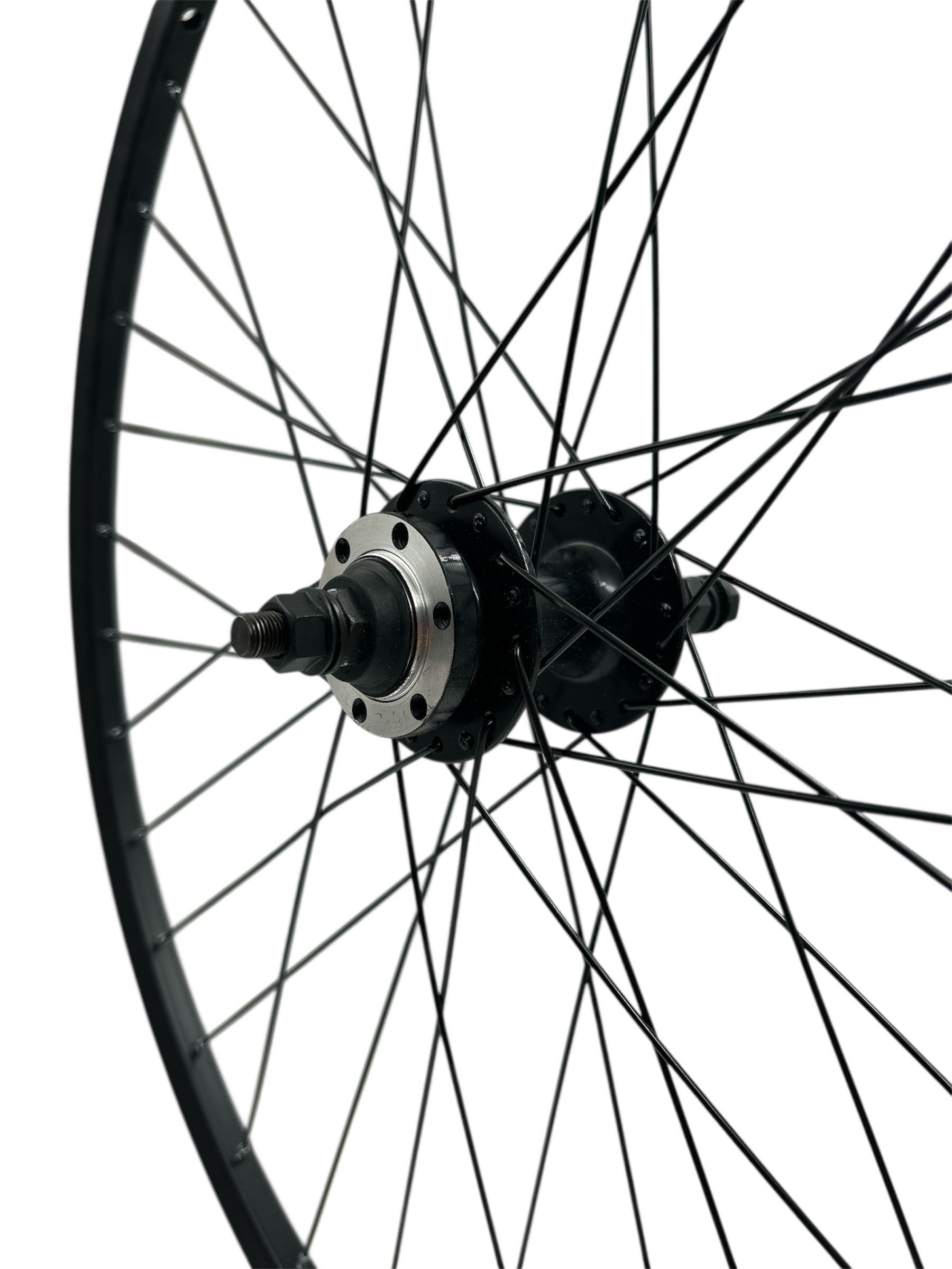 Втулка: на промподшипниках, на 36 спиц, длина оси 175 мм, диаметр оси 10 мм (под гайки).