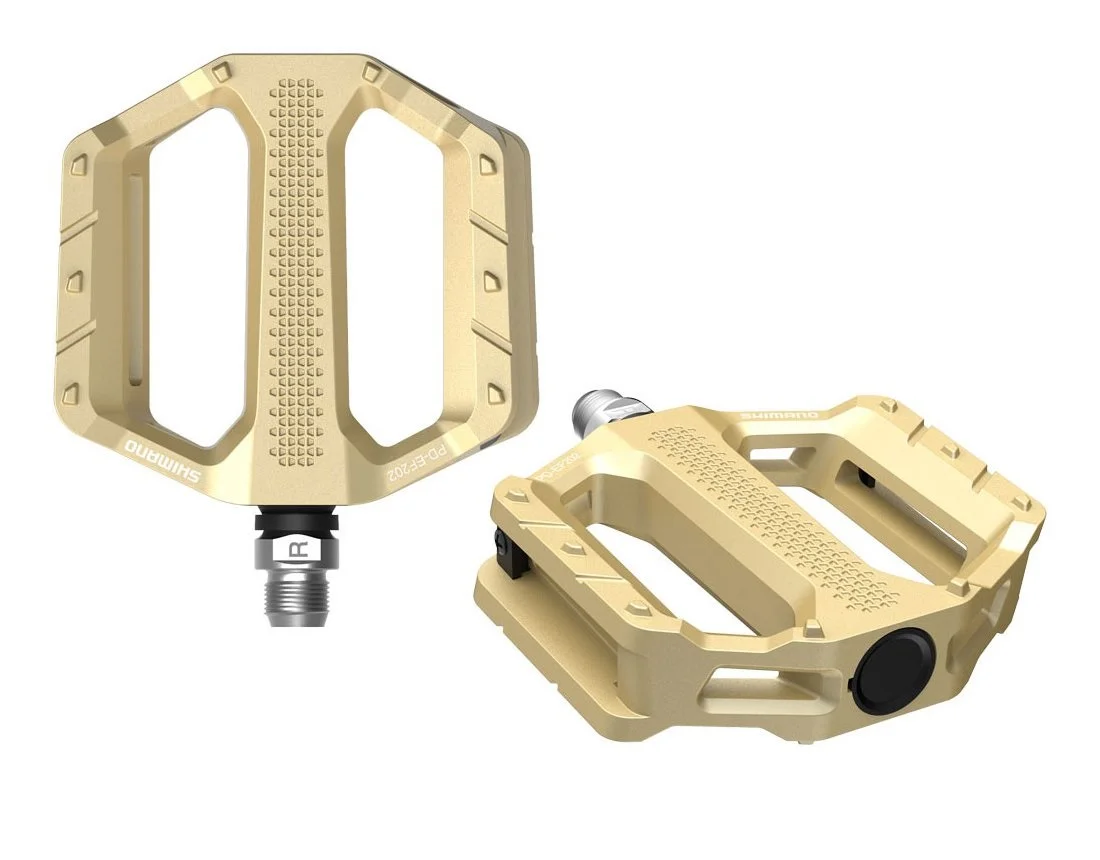 Педали PD-EF202 от SHIMANO имеют широкий алюминиевый корпус и текстурированную поверхность, обеспечивающую устойчивость платформы для педалирования. Эти прочные педали, предназначенные для использования с повседневной обувью, идеально подходят для спортивных поездок и поездок на работу.