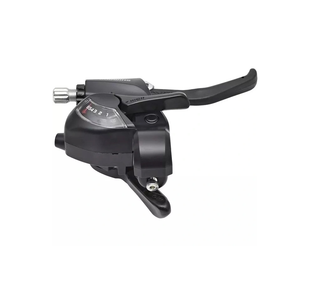 Комбо-ручка Shimano ST-EF41, сочетающая в себе тормозную ручку и шифтер. Очень удобное и плавное переключение. Текущая передача отображается на цифровом индикаторе. Обновленный дизайн для соответствия современному велосипедному стилю. Тросик в комплекте.