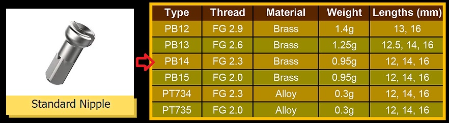 Резьба FG 2.3 мм (14G). Длина ниппеля 14 мм.
