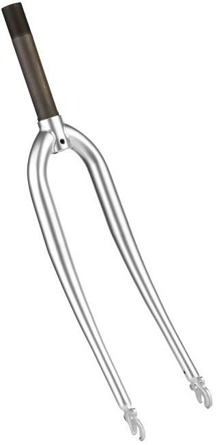 Вилка передняя 28" жёсткая стальная, рулевой шток 1"х164 мм для резьбовой рулевой колонки, под ось втулки 3/8" серебристо-серая
