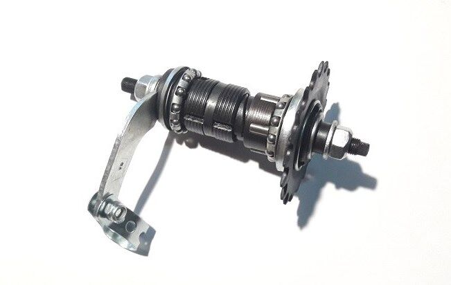 Длина оси 152 мм. Звезда 19 зубьев. Тормозной хомут в комплекте. Без корпуса.